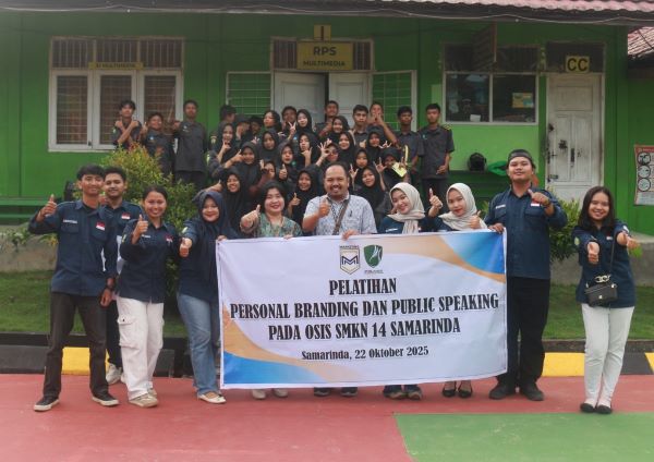 Poskaltim.id, Samarinda — Jurusan Administrasi Bisnis Politeknik Negeri Samarinda (Polnes) melaksanakan kegiatan pengabdian kepada masyarakat berupa “Pelatihan Personal Branding dan Public Speaking bagi pengurus OSIS SMKN 14 Samarinda”, Selasa (22/10/2025).